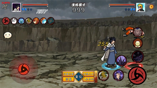 你可以通过虚拟按钮操控角色在场景里自由移动,上下左右方向都能实现;进入对战状态时,右侧的忍术按钮可供使用,但每个忍术都设有冷却时间,使用时得留意合适的时机。