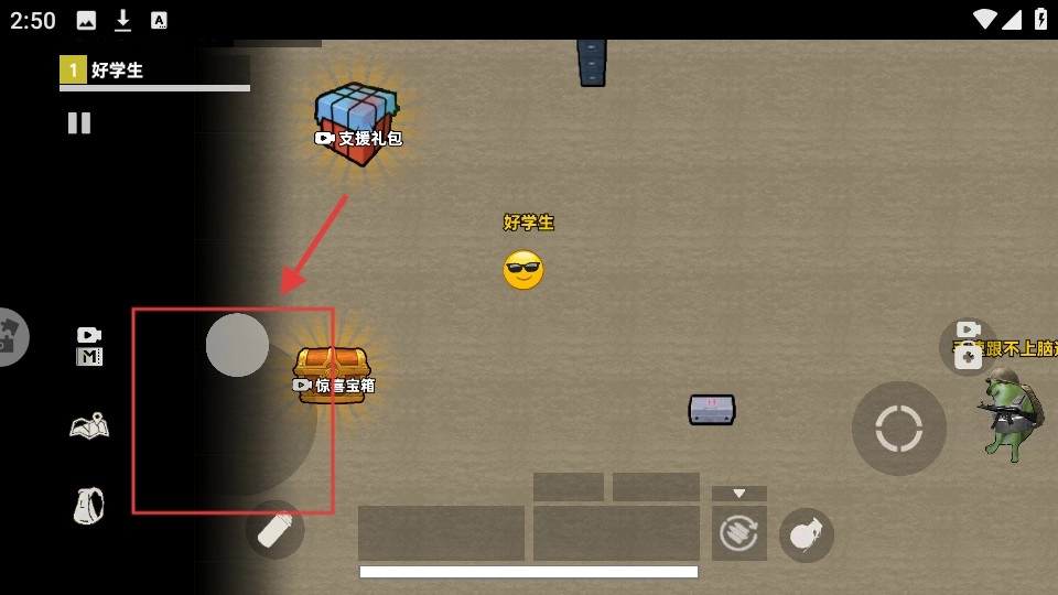 通过操作左侧摇杆来控制角色移动,当角色靠近【惊喜宝箱】和【支援礼包】时,要优先获取宝箱内的物资,以此补充战斗所需的资源。