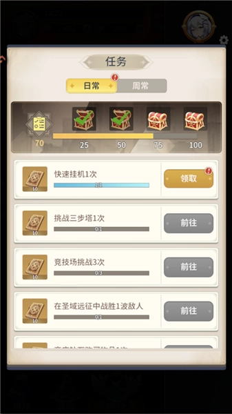 虽然任务分为[周任务]和[日常任务],但只要我们每天按时完成[日常任务],[周任务]基本就能同步完成,周末再查漏补缺就好。作为获取资源最简单且稳定的途径,这是每天必须完成的内容,千万不能遗漏。