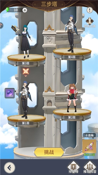 每天有10次免费爬塔机会,次数用完就结束了,每通过十层就能得到10召唤券,另外还能获得大量法师经验,每日挑战是一定要参加的。