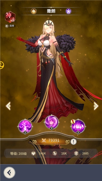 天灾瘟疫:释放瘟疫席卷前方之敌,对敌方全体造成闪电伤害并施加削弱效果,同时有概率触发电击;命中目标时,撒朗会与敌方建立灵魂连接,借此汲取生命值。