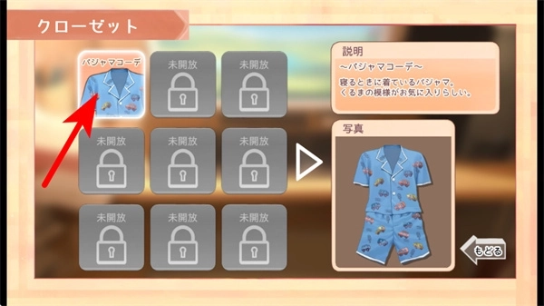 4、在界面中选择对应的服装选项,这是更换角色装扮的关键步骤,选定后即可改变角色的外观样式,让角色的形象展示更加丰富多样。