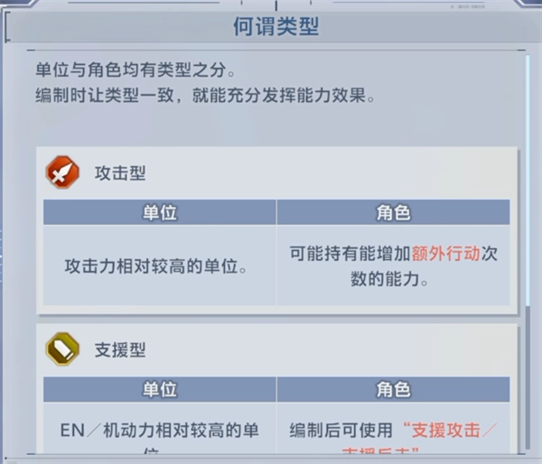 角色的选择是基于机体选择的,首先,角色和机体都分为攻击、支援、耐久三种类型,选择角色时通常要确保角色类型与机体类型相匹配。