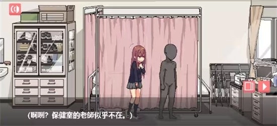 4、出教室后一直往右走看到一个门牌【保健室】点击【门的标志】进去;