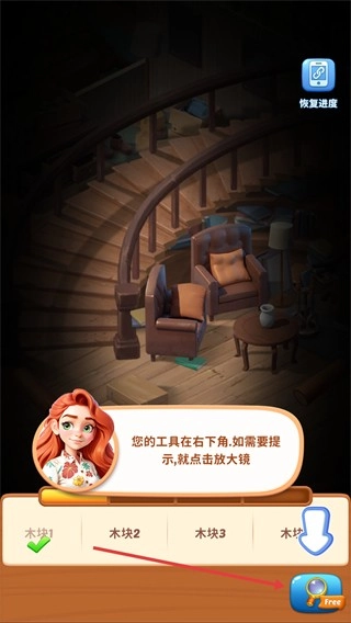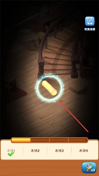 要是收集时遇到困难,可以点击右下角的【放大镜】来获取提示,这样能辅助找到【木块】,以便继续推进任务。