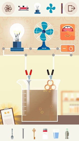 玩家们只需将叉子、铜钥匙这类不同的导体分别放在两个夹子上,就能连通电路。