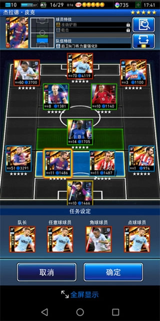 场外选手右侧的按钮可查看所有上场队员的被动buff,每个buff的效果说明会标注生效的球员位置,其中黄色对应门将、蓝色对应后卫、绿色对应中场、红色对应前锋,这些加成叠加起来对整个队伍的提升相当可观。