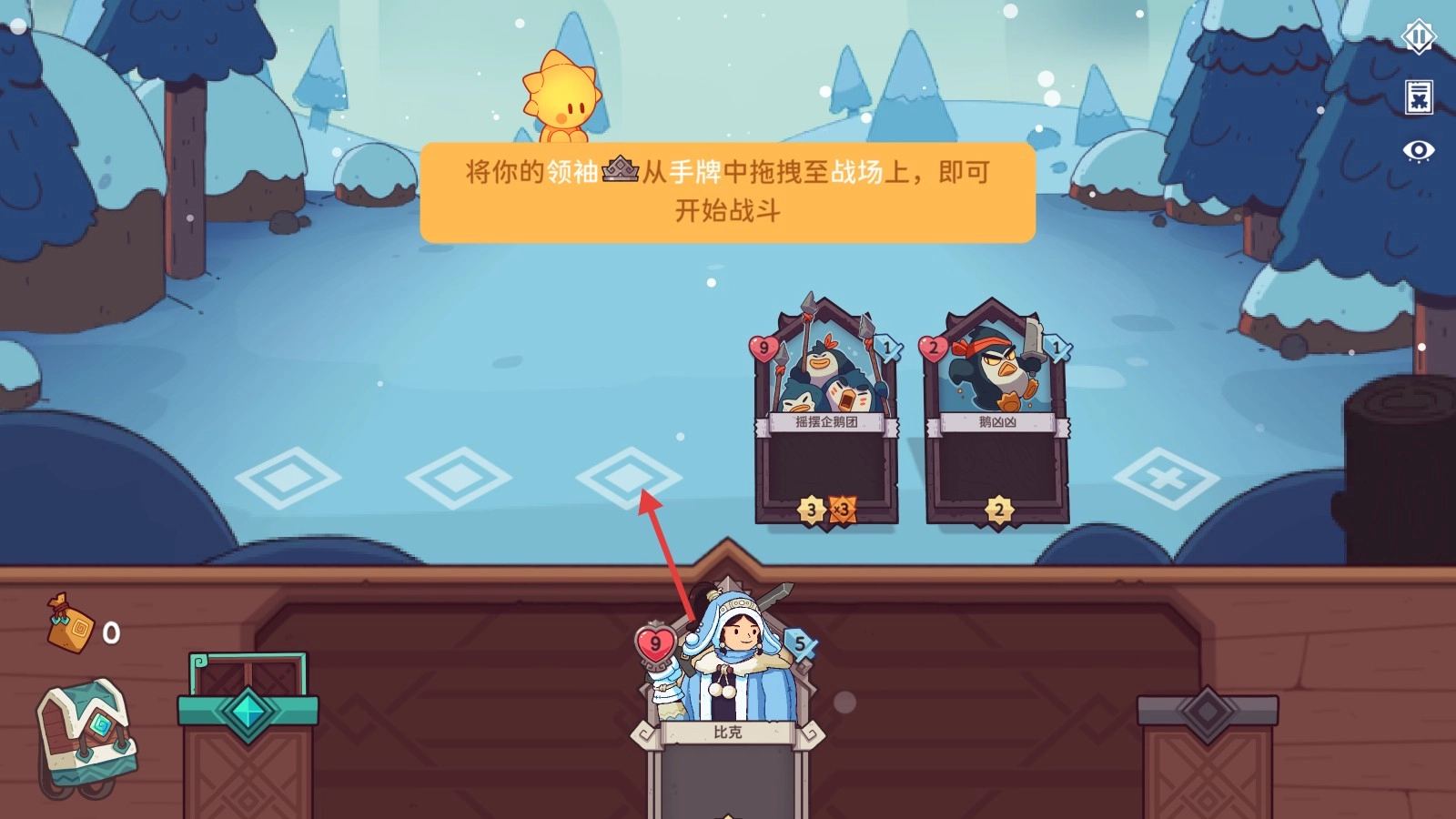 我们要把领袖卡牌【比克】从手牌拖到战场,为战斗开局打好基础,开启卡牌对决的旅程。