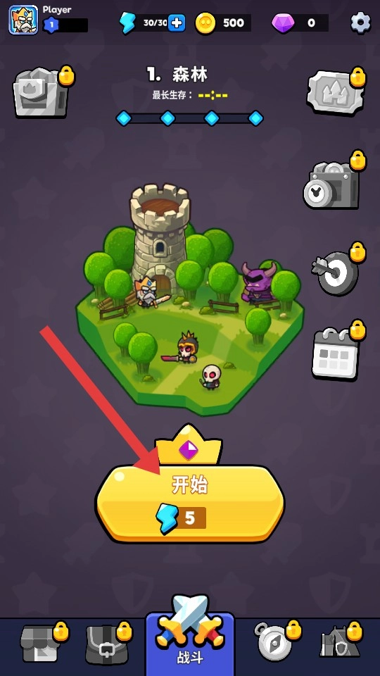 在游戏主界面,点击【开始】按钮,消耗【5】点能量开启游戏。
