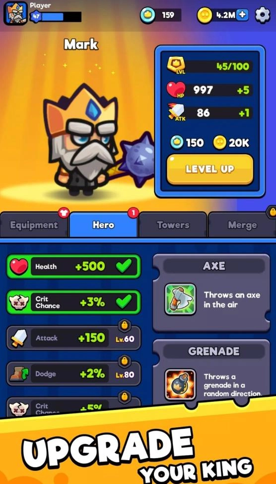 提升战士的战斗能力,同时强化塔防系统的防御水平,这样就能在挑战里争取到更有利的机会。发起进攻时,能够快速化解潜在的危险。而且每一轮攻击过程中都会出现各种不同的状况,正等着你去一一应对。