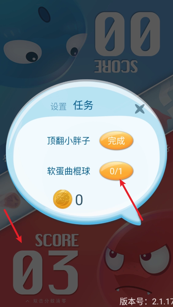 回到主界面后,胜利的一方会被记录下赢得的分数,点击那个小胖子还能查看任务详情呢。