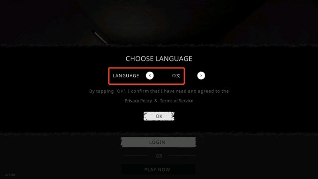 打开游戏后,界面默认显示为英文。此时我们只需点击language左边的按钮,就能看到“中文”这一选项了,具体可参考下方图片: