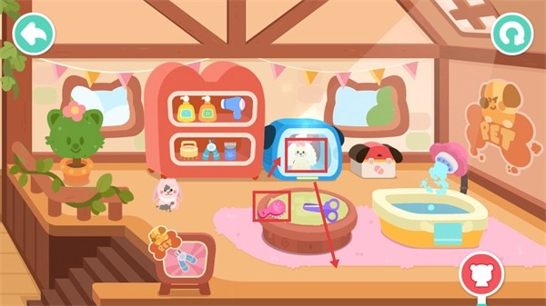 完成宠物的洗护流程后,把它转移到相应容器里进行烘干,以此推动互动进度。