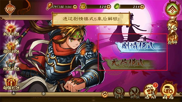 游戏内包含剧情和无尽两种模式,无尽模式需在剧情模式通关第五章后解锁。