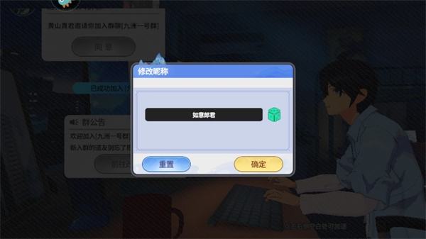 1、打开游戏后你会收到一个名叫黄山真君的家伙加你好友,他会邀请你加入九州一号群,点击同意!