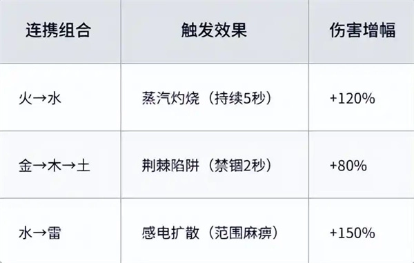 可以组建一个由火、水、雷元素构成的三角阵容,以白尊者(火属性)作为起手角色,接着让羽柔子(水属性)接续释放技能,最后由宋书航(雷属性)完成收尾,这样就能触发双重元素反应。