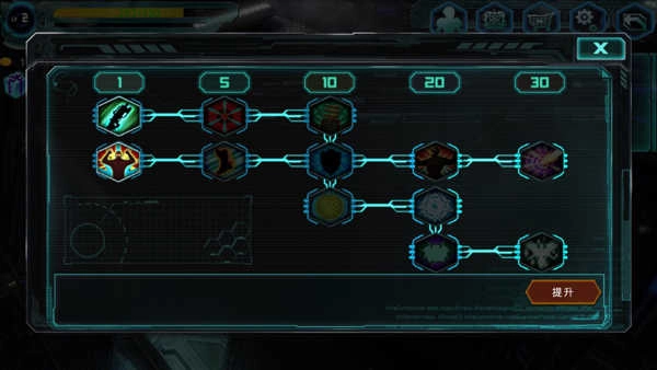 玩家点击界面右上角第二个图标,该图标对应技能栏,玩家可消耗金钱对技能进行升级,从而更轻松地消灭敌人。