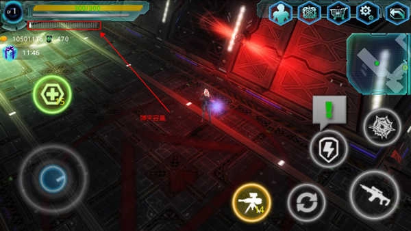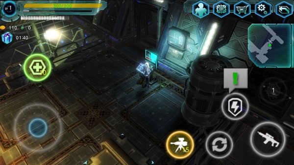 这款游戏的操作难度不高,进入游戏后,玩家会发现界面左下角有个圆环按钮,它的功能是控制角色移动——玩家只需按住该按钮并朝想要角色移动的方向操作,就能实现角色的移动。移动过程中,玩家需要遵循地面绿色箭头的指引;若遇到异形生物,点击界面右下角带枪图标的按钮即可发射子弹攻击目标。另外,游戏里还有一个带有黄色图标的机枪标志道具,点击该图标,玩家就能释放机枪塔进行自动攻击。