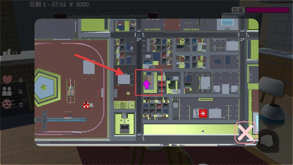 点击左上角的【雷达】按钮就能打开地图,红色方框里的紫色箭头所指之处就是目标位置,你需要按照提示进行移动。