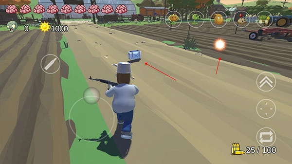 8、还可以利用手中的枪来攻击僵尸,天上会随机掉落阳光和弹药,靠近即可拾取。