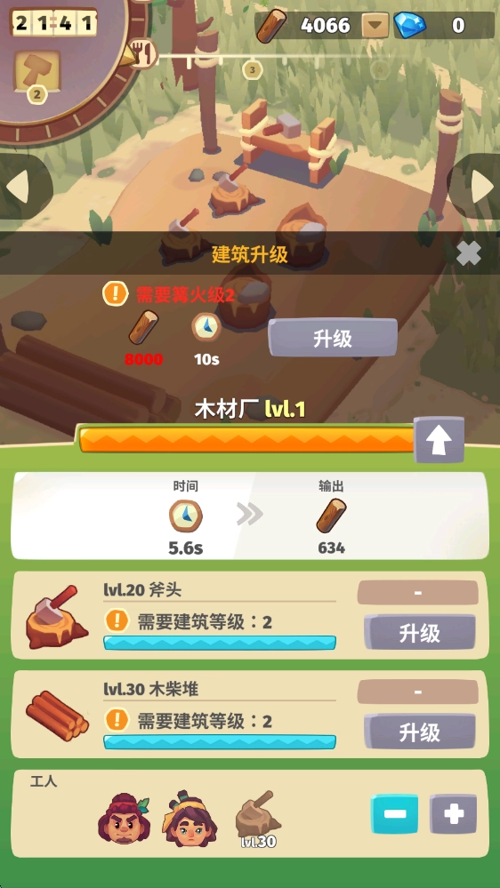 建筑设有专属经验条,当经验条累积满后,满足特定条件即可完成升级。