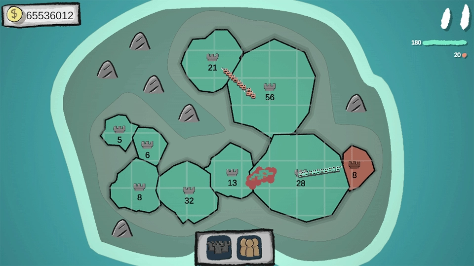 《占山为王》是一款巧妙融合策略性与休闲性的领土争夺类游戏,为玩家打造了一场趣味十足的领土争夺盛宴。在游戏中,玩家将化身为运筹帷幄的战场指挥官,在色彩明快的卡通地图上,率领风格各异的士兵军团向一座座城市发起挑战。游戏没有繁琐的操作门槛,却蕴含着层层递进的策略深度——从初期抢占资源点的谨慎布局,到中期与对手的兵力周旋,再到后期整合版图的霸主对决,每一步决策都深刻影响着战局的走向。