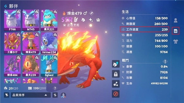 宠物最重要的就是工作速度,可以点宠物的这边看