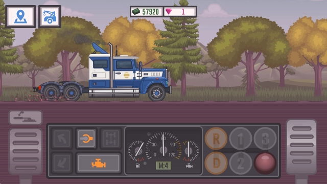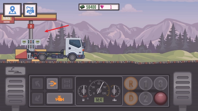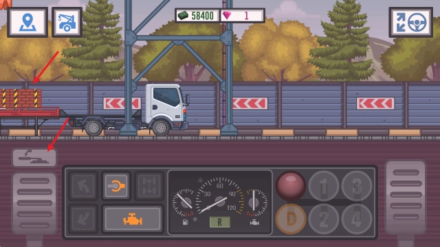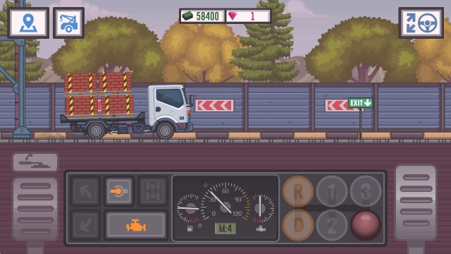 游戏采用2D驾驶形式,操作仅需简单切换档位,通过点击刹车与油门控制速度,便于玩家顺利完成运输任务。此外,玩家需自行规划路线前往装货点,操控机械手将货物稳妥装入卡车后,即可继续运输行程。