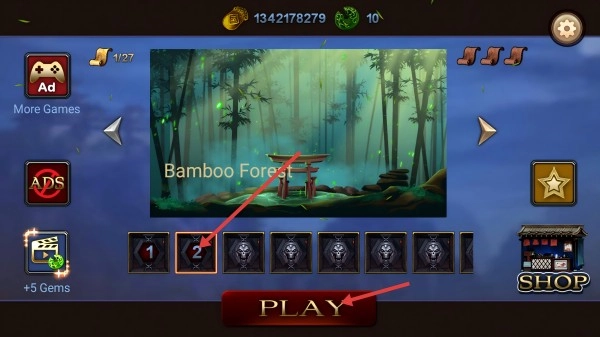 在主界面选择【BambooForest-关卡2】,点击【PLAY】按钮,即可进入竹林对战场景。