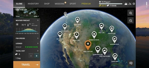 加载完成后进入游戏界面,第一步是在地图上选择钓鱼的位置。