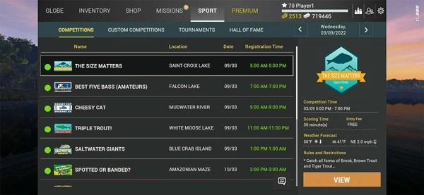 《垂钓星球》的玩法系统十分多元,玩家能自由挑选不同的垂钓场景与时段,搭配各类渔具和鱼饵,来捕获形形色色的鱼类。不仅如此,游戏内还设有丰富的活动与赛事,玩家可以和其他钓友进行线上竞技,借助个人积分、成就勋章、实时排行榜以及精英玩家榜单等形式,尽情展现自己的垂钓技艺。这款游戏既考验玩家的钓鱼技巧与策略规划能力,又凭借其完善的社交互动功能和竞技机制,为玩家带来充满挑战与激情的游戏体验。