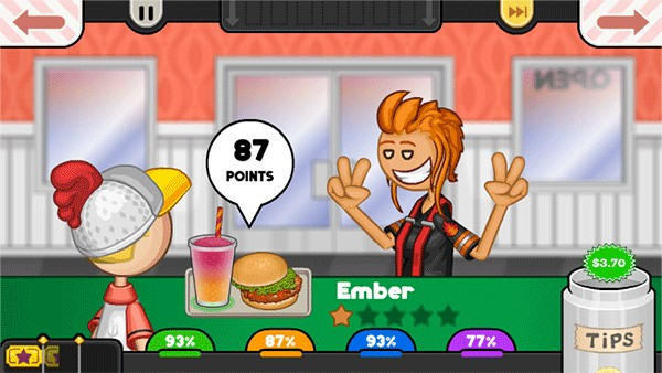 9、做完后,把餐点给顾客,顾客会给你评分,分越高获得的金币越高。