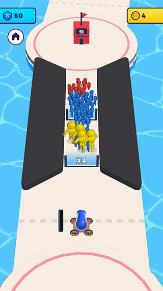 按住大炮不松手就能持续发射炮弹人,炮弹人穿过倍数门后数量会增加,建议朝着倍数高的门发射。