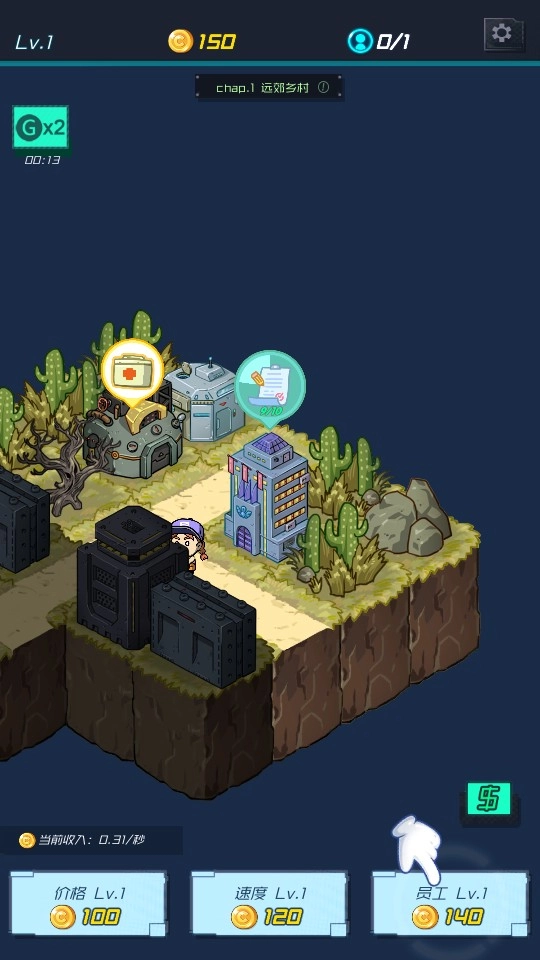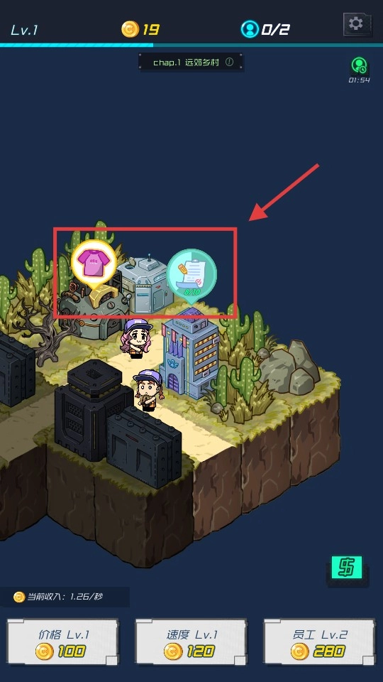 进入关卡后,花费金币升级“价格”“速度”“员工”这几项,以此来提高基础的经营效率。