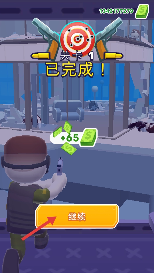 关卡完成后,点击【继续】按钮,即可领取奖励并进入下一关。