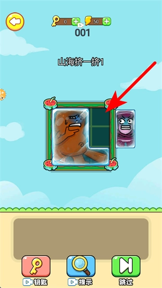 进入游戏界面后,点击“开始游戏”按钮,即可进入山海挤一挤1的拼图关卡场景。