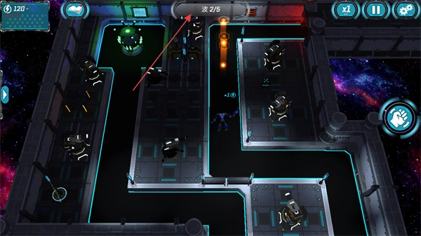完成第2/5波防御后,便会进入第3/5波,同时解锁新的防御塔升级选项。