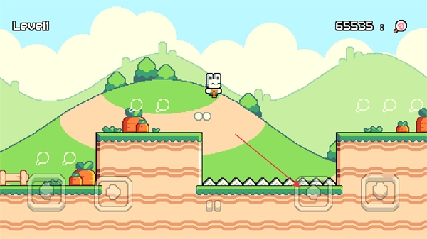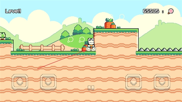 采用复古又可爱的像素画风,兔兔主角造型软萌讨喜,关卡场景色彩鲜艳,从青青草地到奇幻城堡,每处场景都充满童趣,视觉体验轻松治愈。