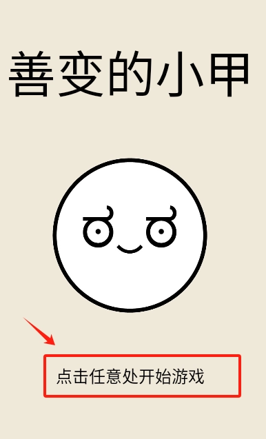 点击红色框内的“点击任意处开始游戏”按钮,即可进入善变的小甲游戏。