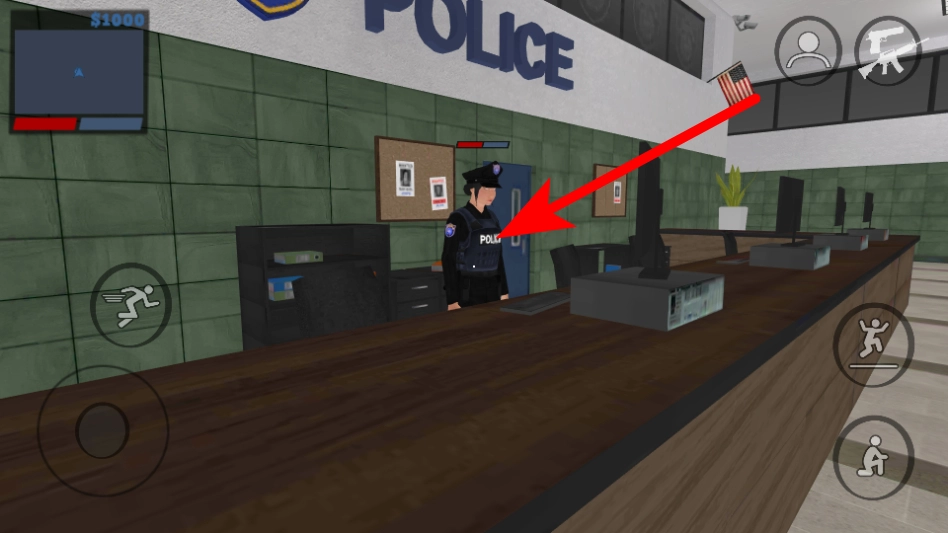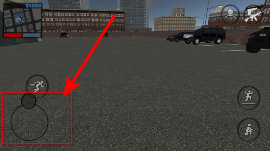 进入警察阵营场景后,可借助左侧的虚拟摇杆操控角色在场景内移动,前往任务目标所在的位置。