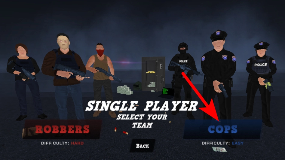 在阵营选择界面选择COPS警察阵营,该阵营难度等级为EASY,选择后能解锁警察相关的任务。