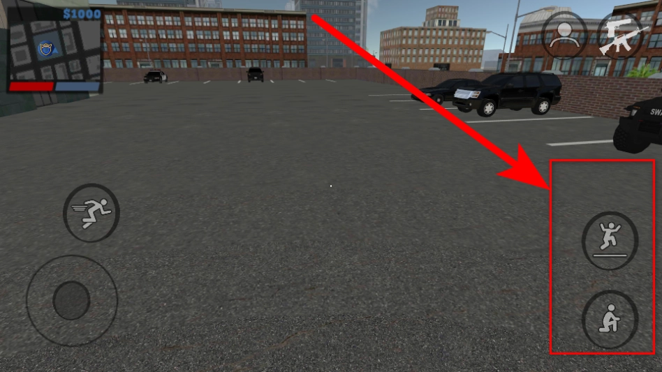 可以借助右侧的动作按钮,比如蹲伏、特殊动作等,来调整角色的状态,以此适应不同任务场景的需求。