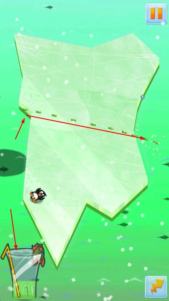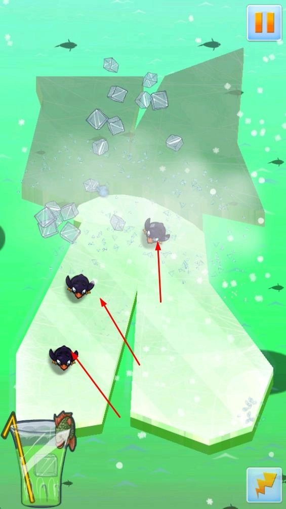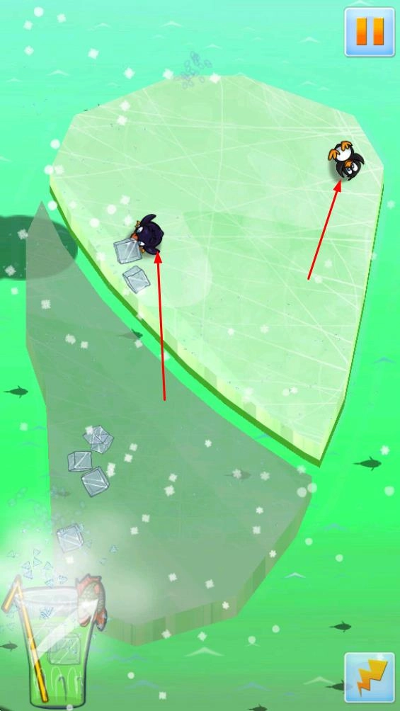 通过切割动作,让冰块碎裂或是改变其覆盖范围,使企鹅能在调整后的冰块表面移动,从而推动游戏的进行。