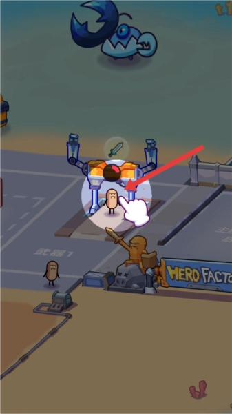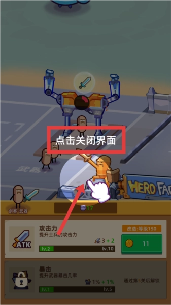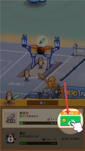 玩家进入游戏后,按照提示点击指定位置来升级小兵。