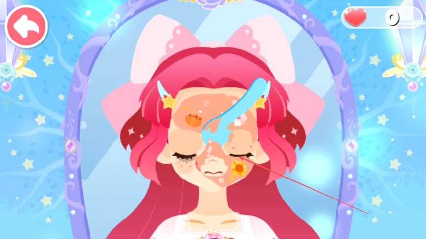 切换场景,用工具帮小公主清理掉脸上的花瓣之类的杂物,让她的脸部保持整洁。