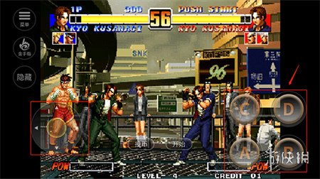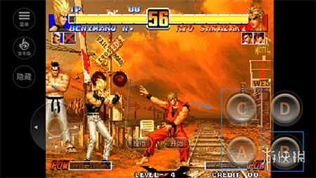 在游戏里,你得同时操控三个角色展开格斗对决,哪一方先把对方的三个角色都击败,哪一方就能赢得胜利。格斗开始之后,你可以用右侧的ABCD四个招式按键来攻击对手。