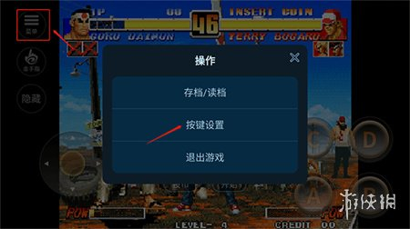 在游戏开始前,建议先对按键及组合键进行设置,具体操作是点击左上角的菜单按钮,进入后选择“按键设置”选项。