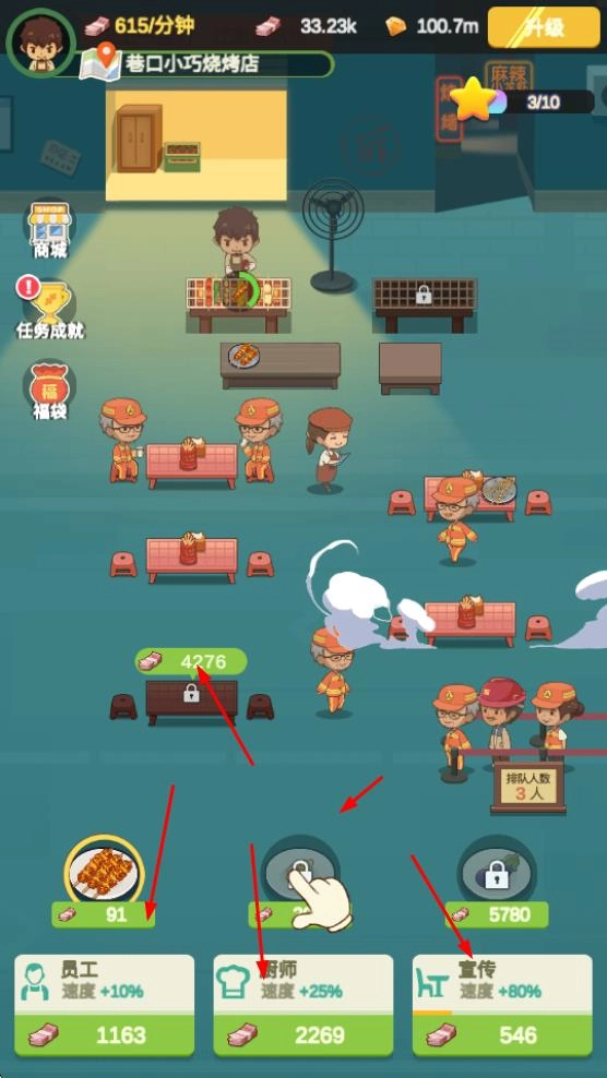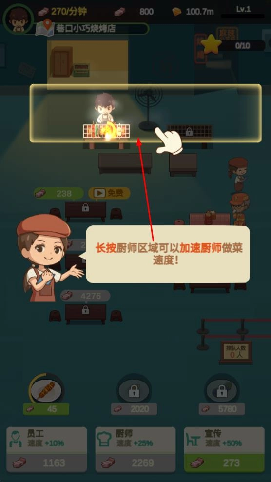 走进巷口那家精致的烧烤小店,长按厨师所在的区域,就能让厨师的烹饪速度变快,提高出餐的效率,这可是让店铺经营节奏加快的重要操作呢。