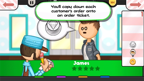 3、每个客户都有独特的订单需求,玩家需要根据客户要求完成甜甜圈的制作。