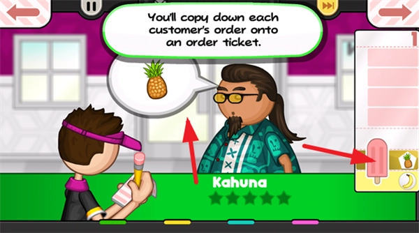 客人抵达后,直接点击左侧的接单功能选项,即可开始学习冰棍的制作方法。
